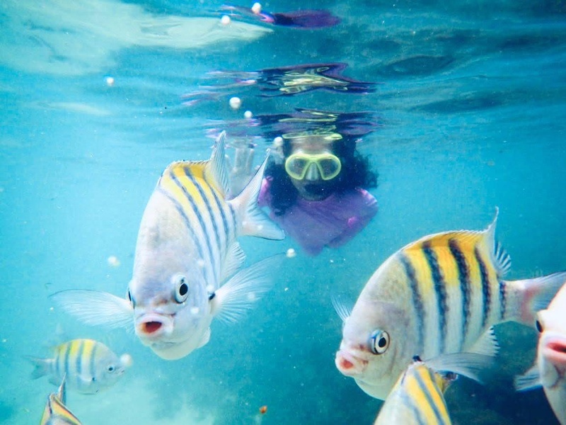 A vida marinha se faz presente nas piscinas e você desfruta desse pequeno paraíso protegido pelos recifes ao redor.